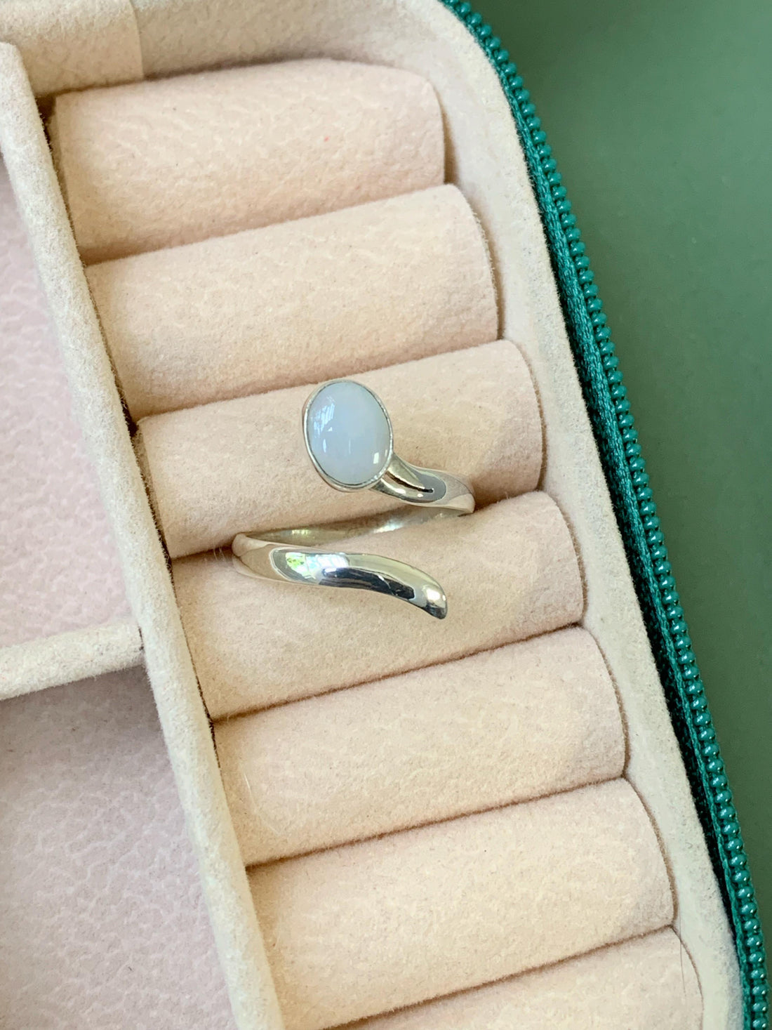 Anel Ajustável Oval Opala Leitosa Pedra Opala Natural com Prata 925 OBS: Comprimento: 1,3mm |...