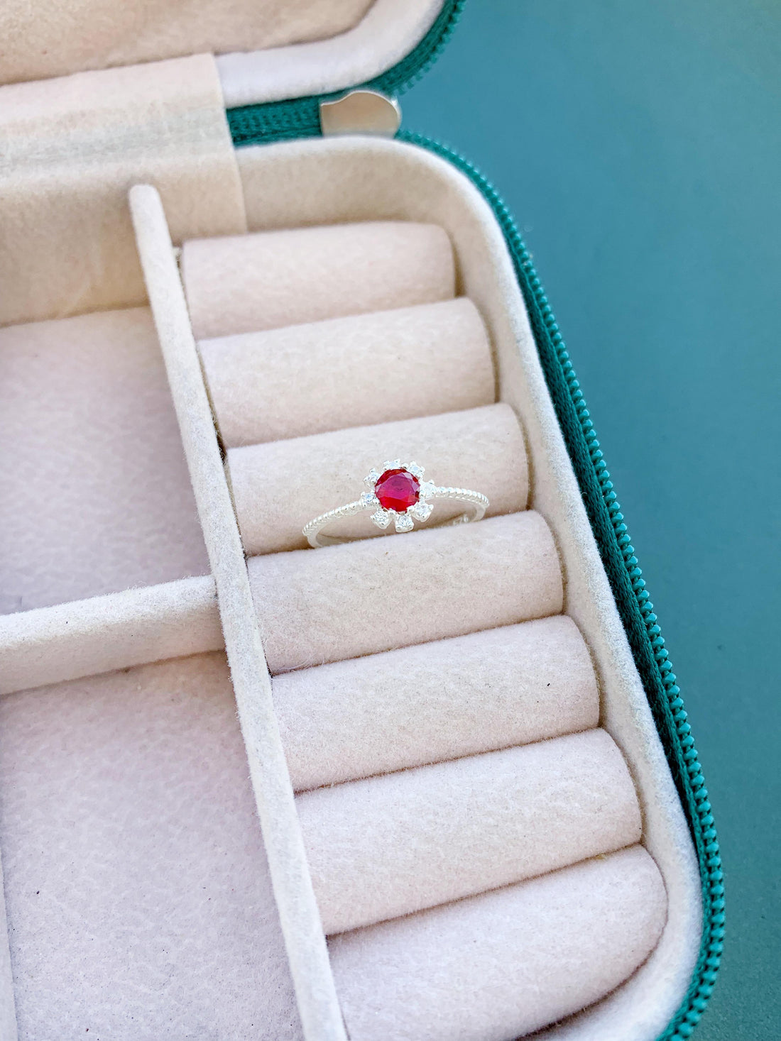 Anel Cravejado Zircônia Vermelho OBS: Aro Bolinha | Pedra Zircônia Vermelha Anel em Prata 925...
