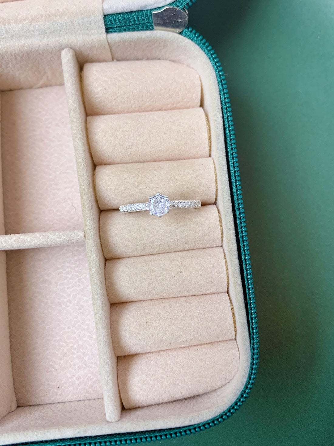 Anel Cravejado Solitário Caixa Alta Pedra Transparente