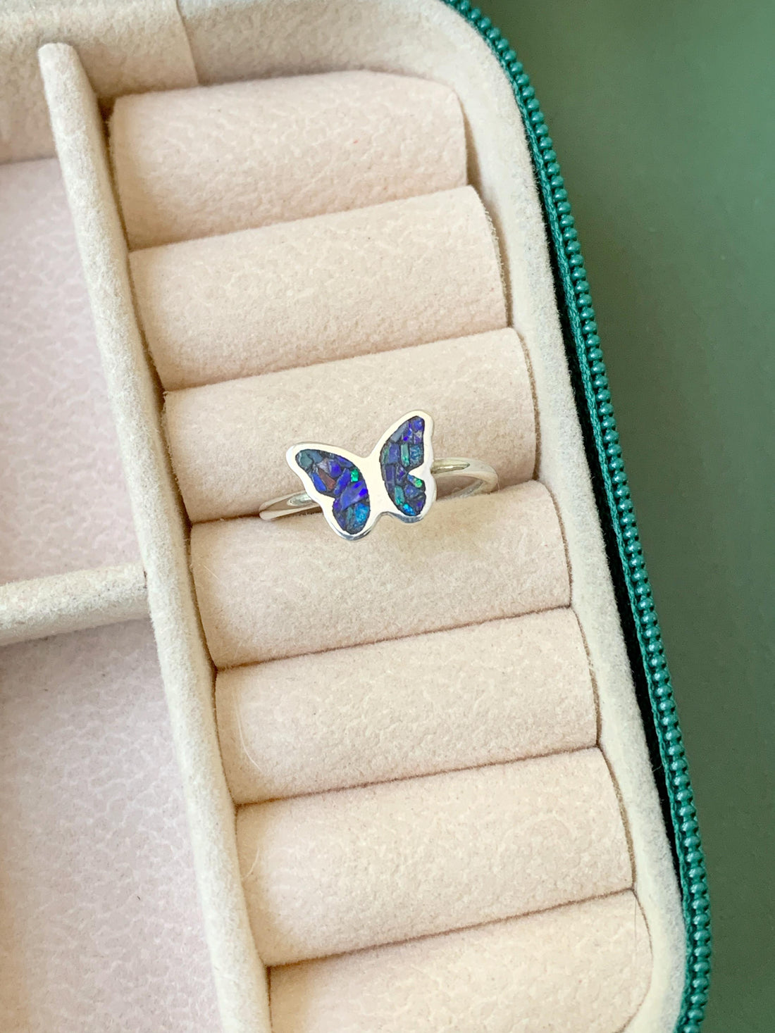 Anel Lua e Estrela em Opala Pedra Opala Natural com Prata 925 OBS: Borboleta: Largura...