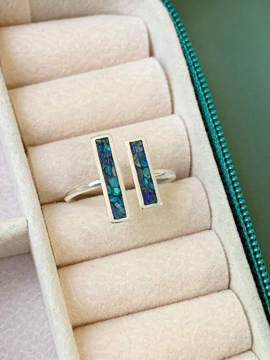 Anel Dois Retângulos em Opala Pedra Opala Natural com Prata 925 OBS: Linha esquerda: 1,5cm...