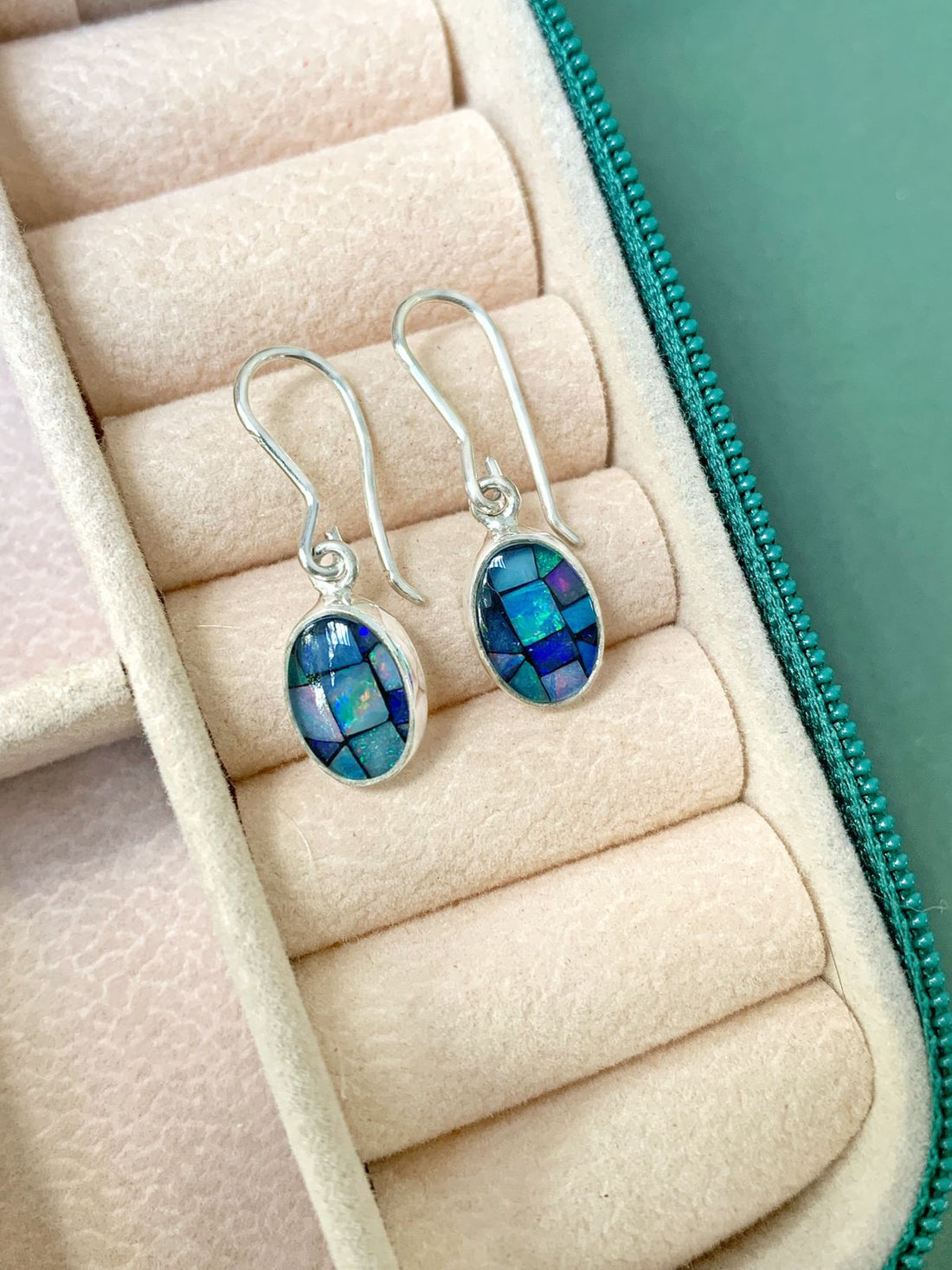 Brinco Oval Pendurado Opala Pedra Opala Natural com Prata 925 OBS: oval 1,1cm - gancho...