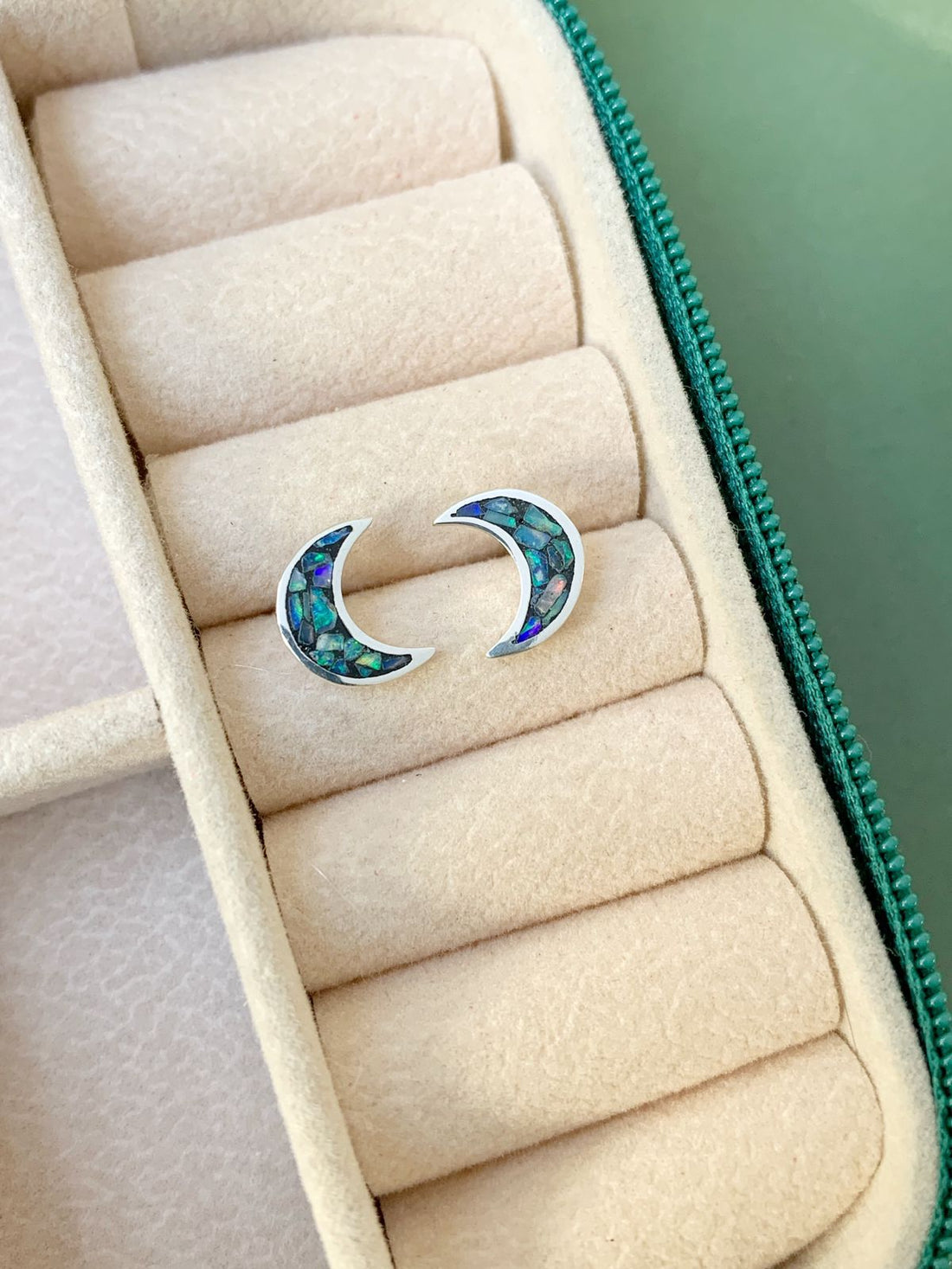 Brinco Lua em Opala Pedra Opala Natural com Prata 925 OBS: pingente 1cm – tipo...
