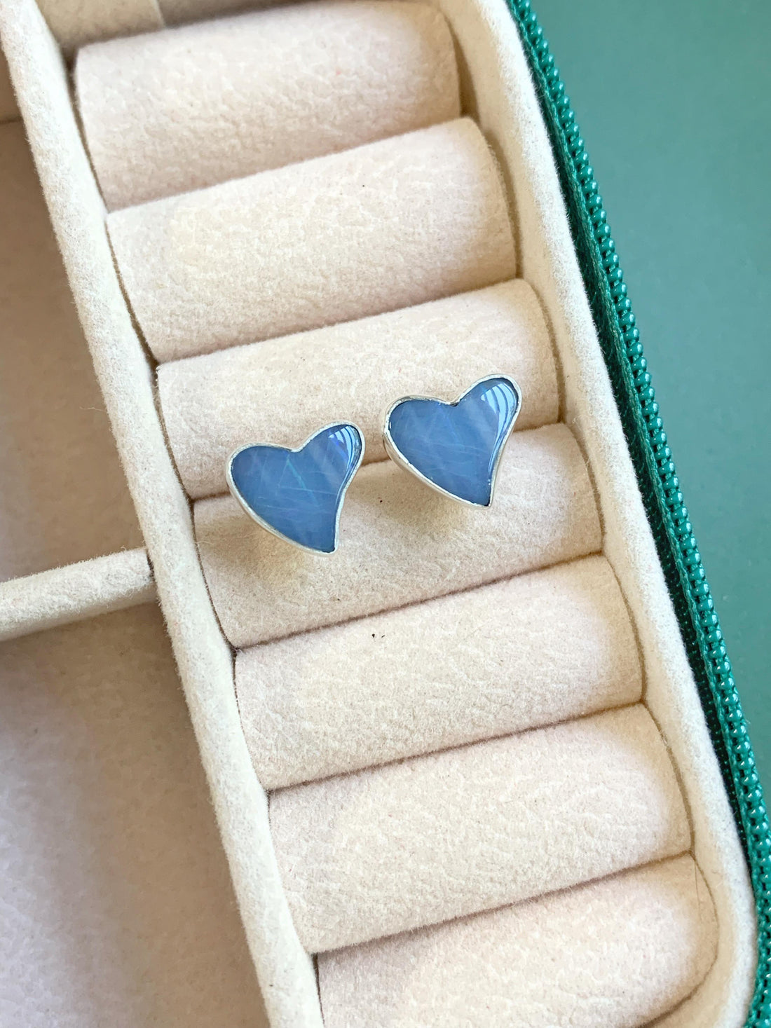 Brinco Coração Torto em Opala Double M Pedra Opala Natural com Prata 925 OBS: Pingente...