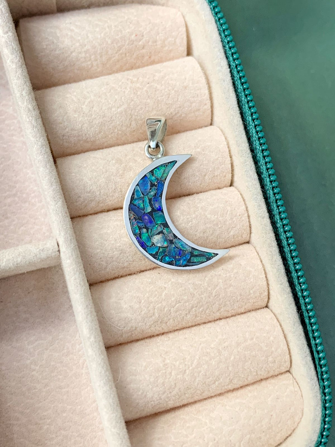 Pingente Meia Lua em Opala Pedra Opala Natural com Prata 925 OBS: pingente comprimento: 2cm...