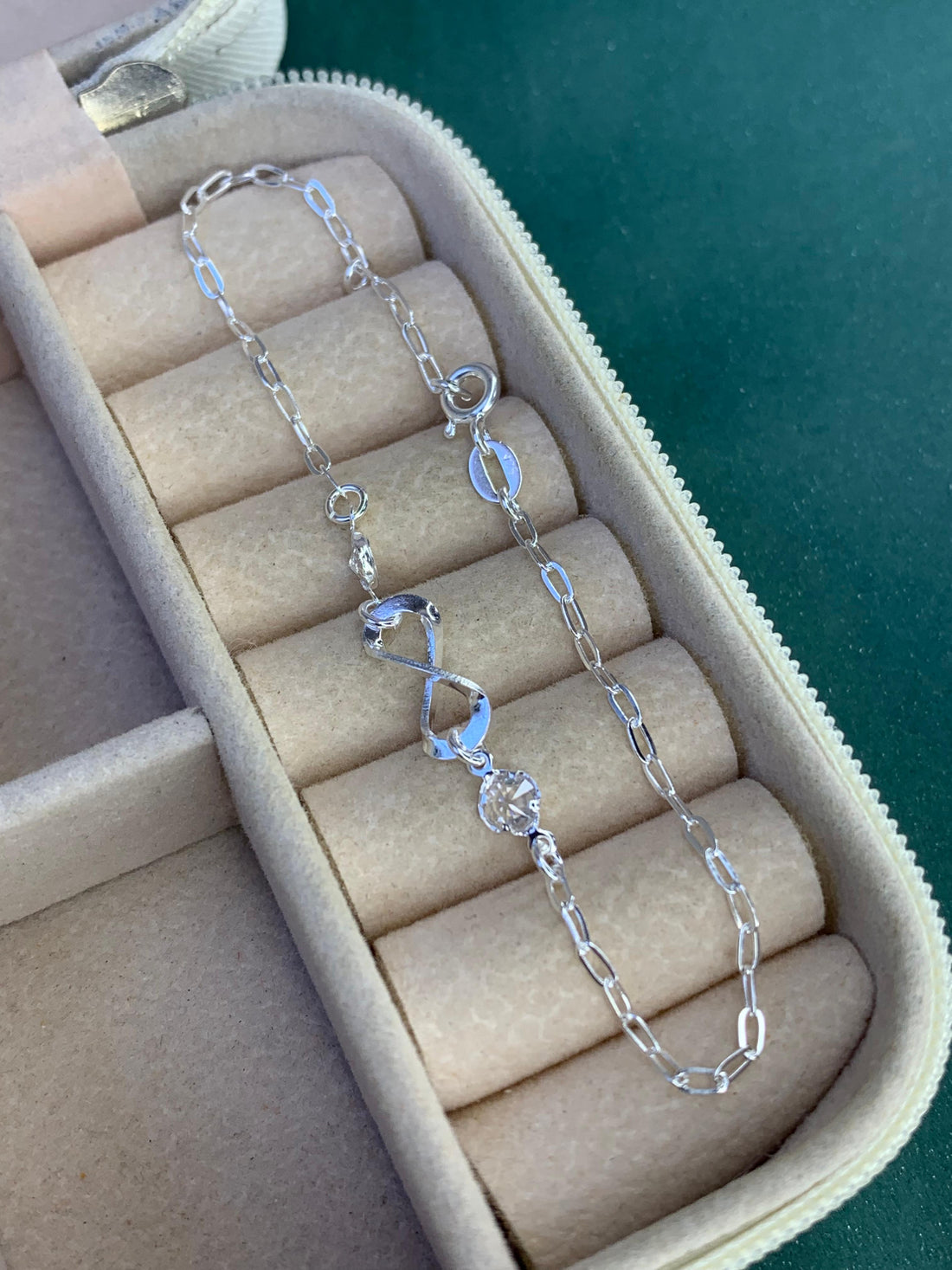 Dimensões aproximadas: Corrente: Cartier 18cm Pingentes: Infinito Vazado com Pedrinhas de Zirconia TransparentesMaterial: Prata 925...