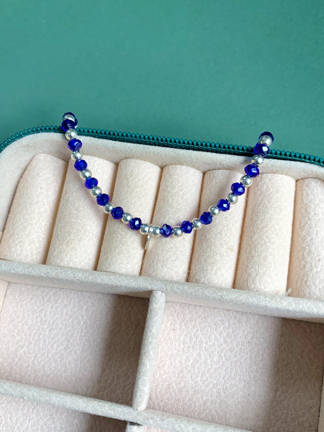 Pulseira Cristal Az Bolinha Prata Fio Silicone OBS: Pulseira 18 cm Pulseira em Prata 925...