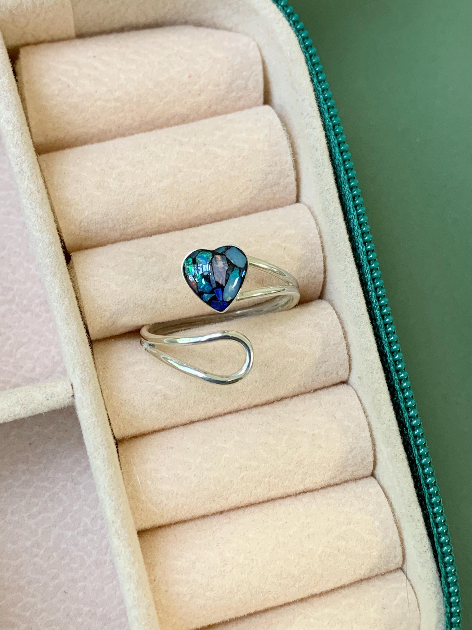 Anel Ajustável Fio Duplo e Coração de Opala