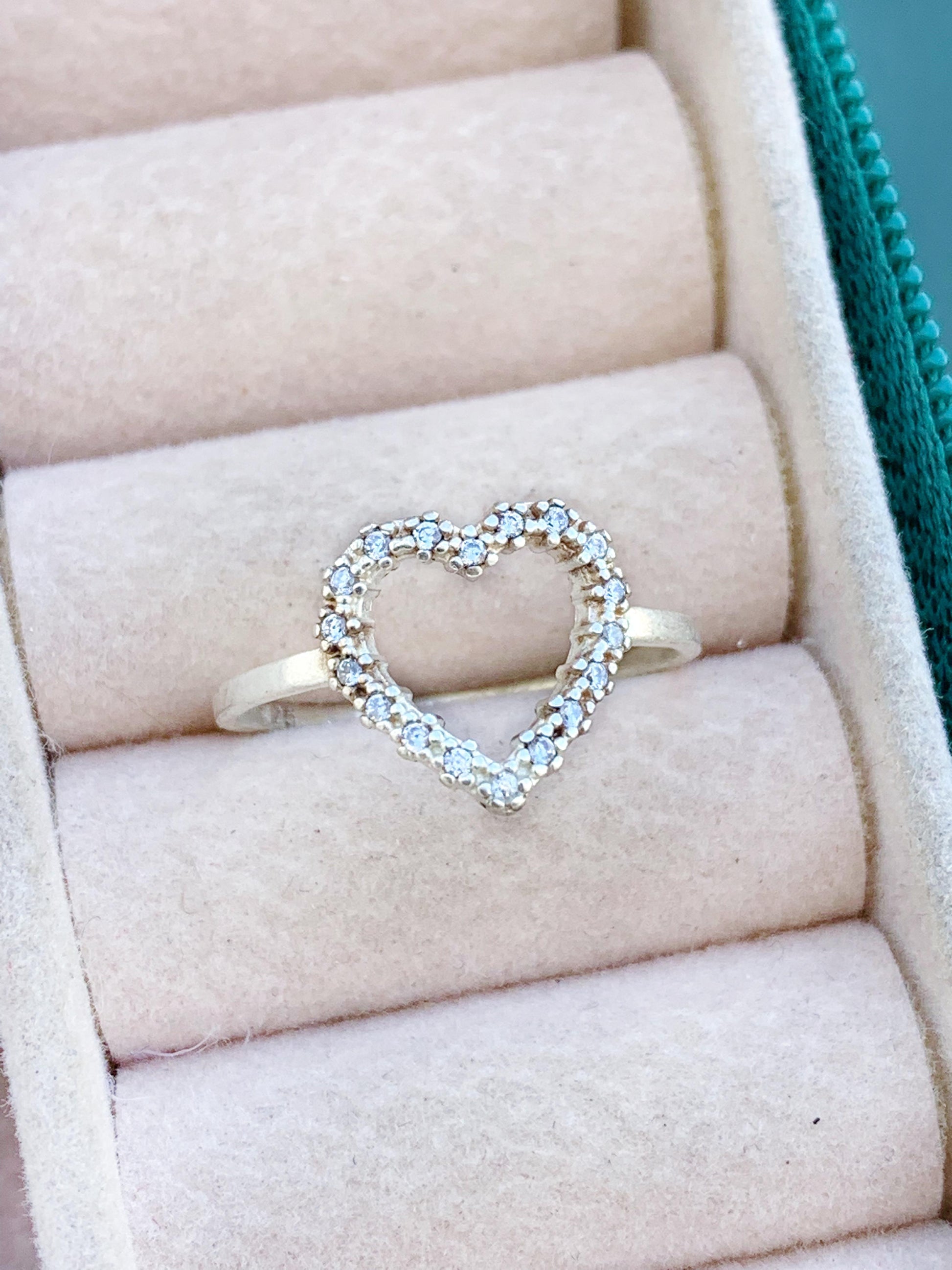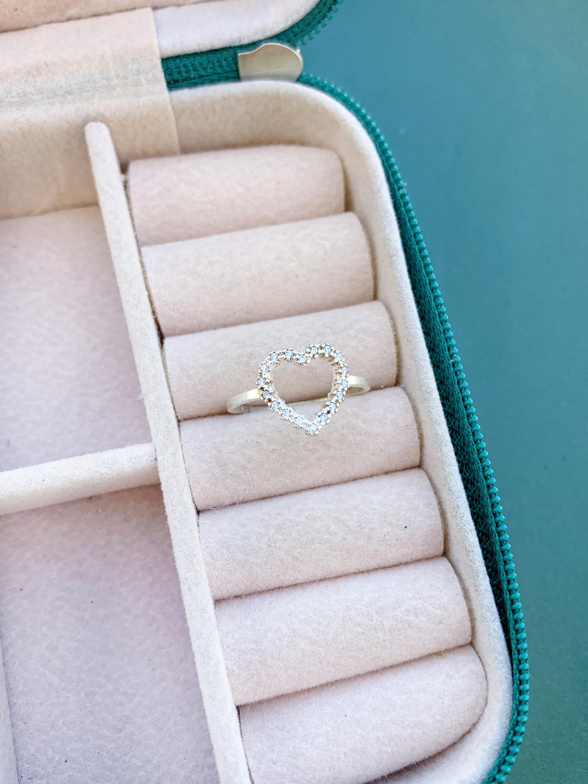 Anel Coração Vazado Cravejado