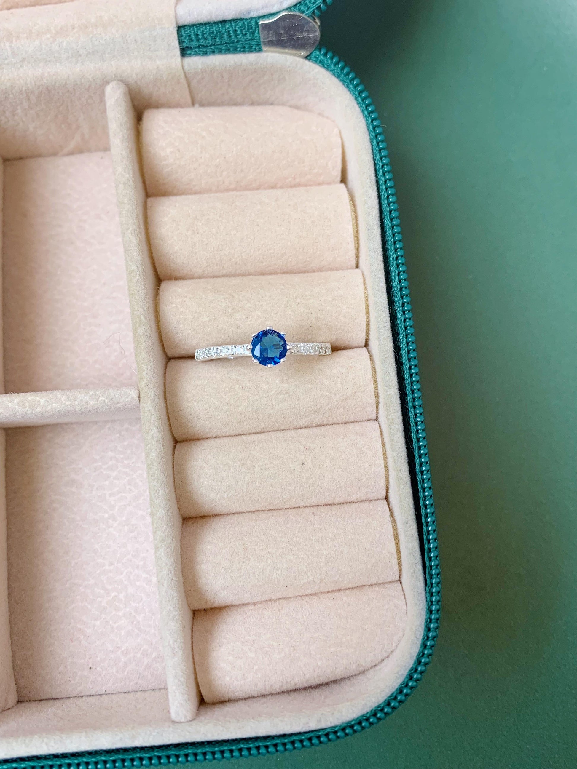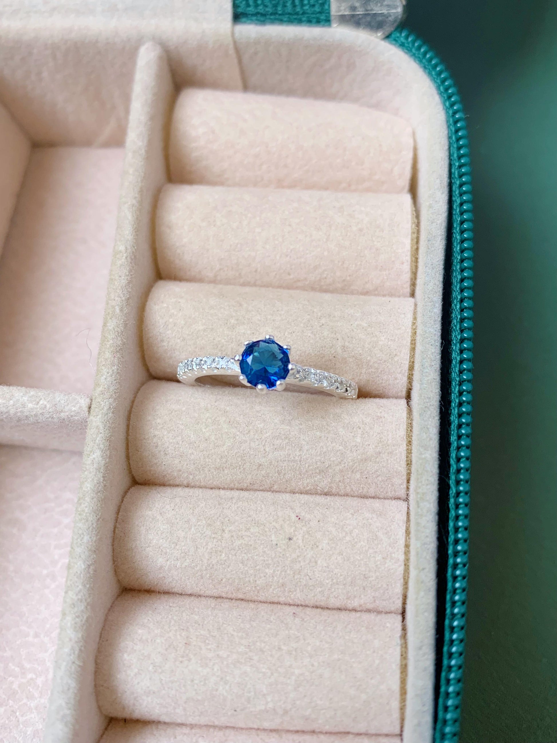 Anel Cravejado Solitário Caixa Alta Pedra Azul