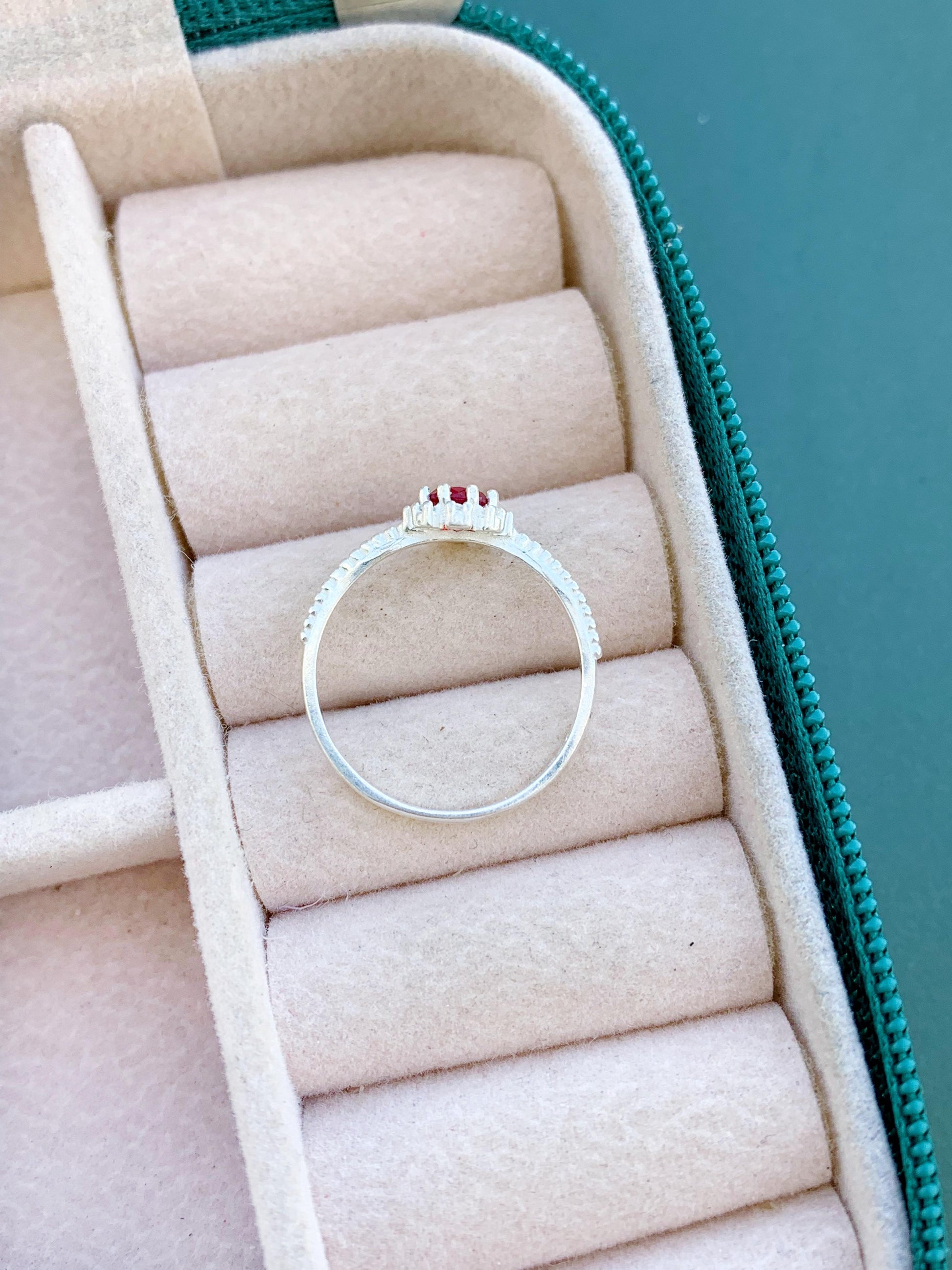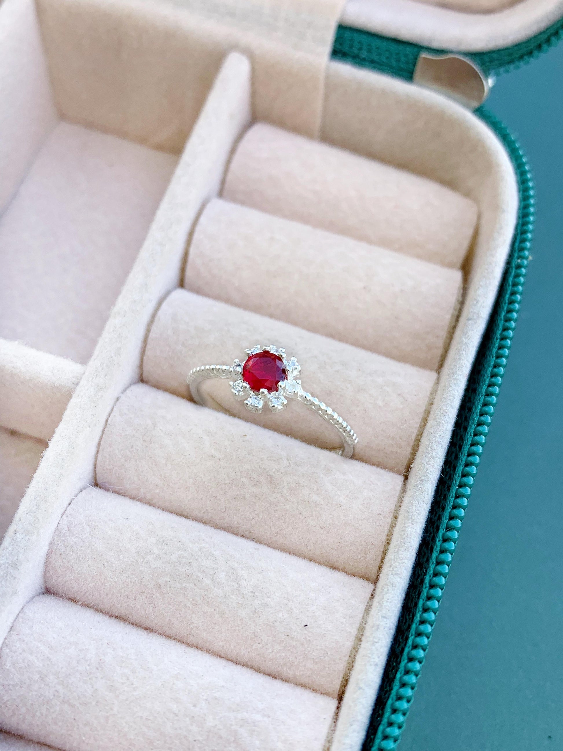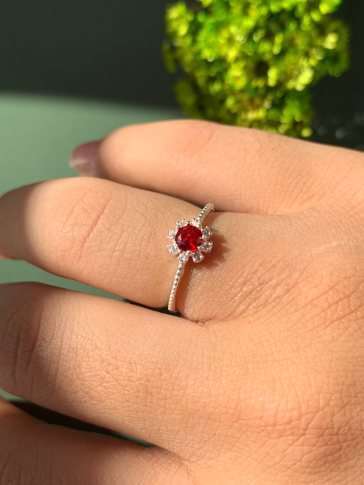 Anel Cravejado Zircônia Vermelho