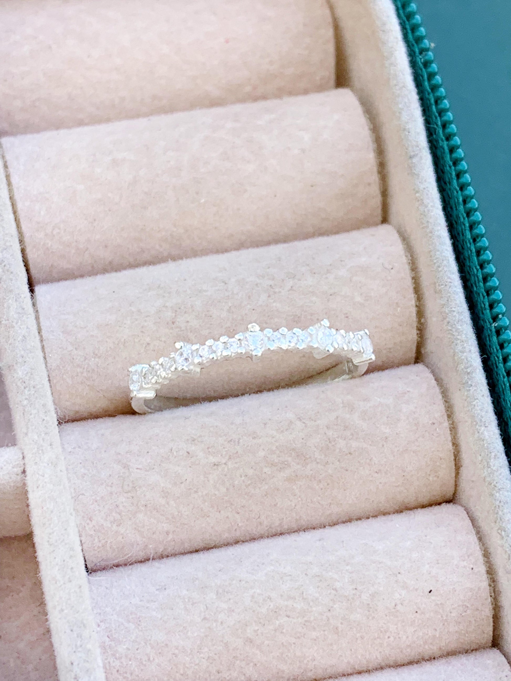 Anel Meia Aliança com 5 Zircôneas Maiores