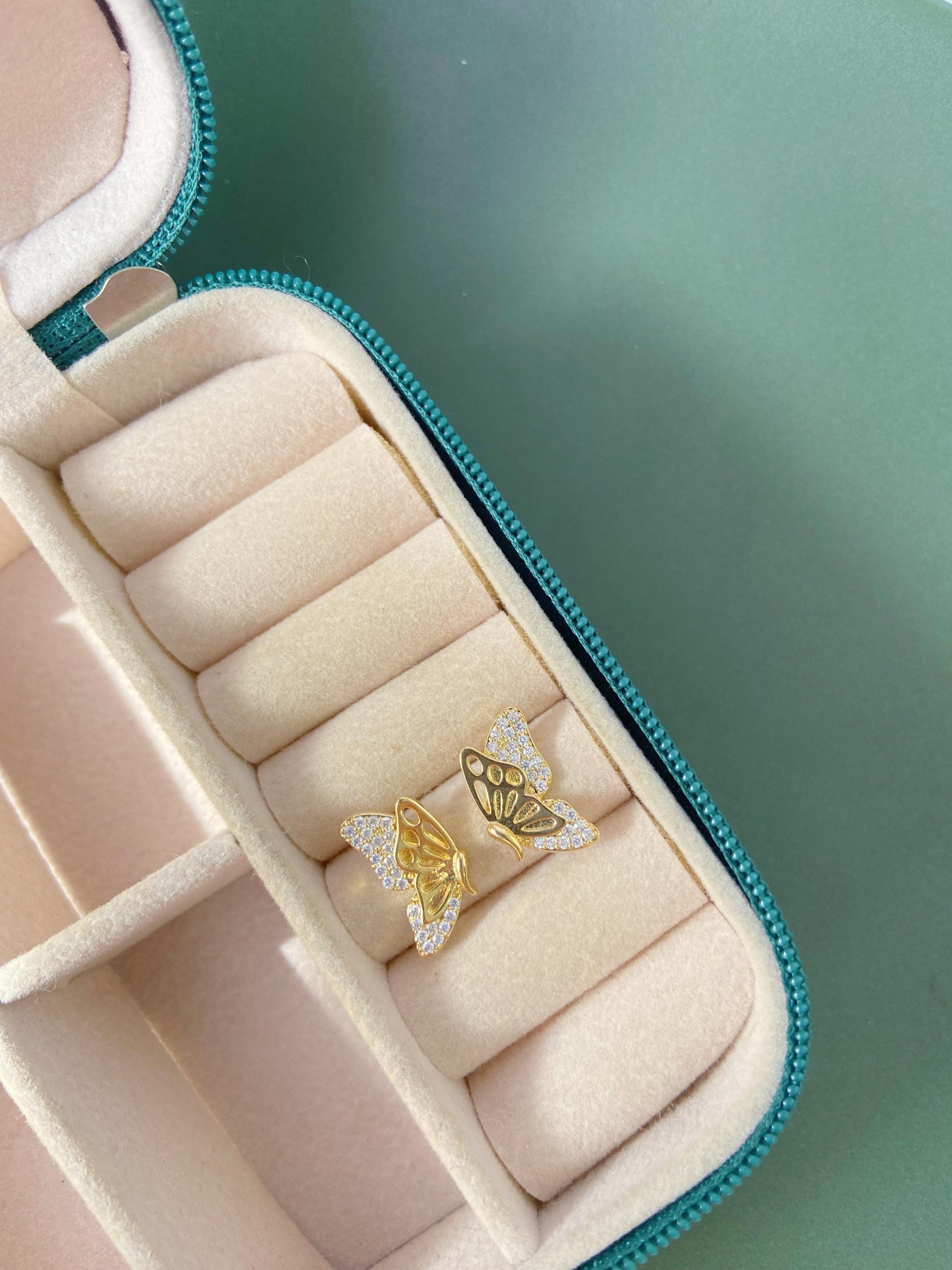 Brinco Borboleta Dupla Cravejado Folheado