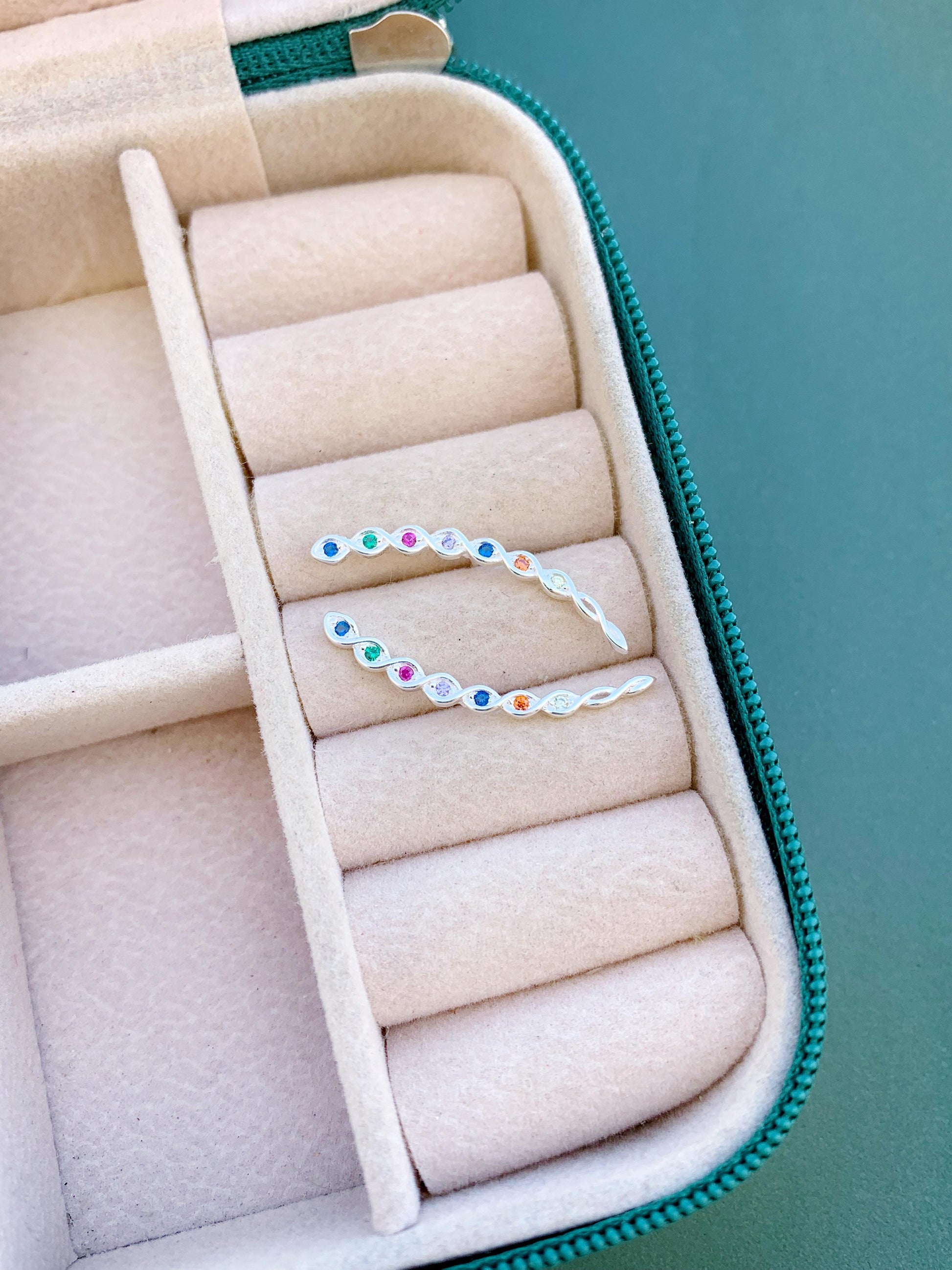 Brinco Ear Cuff com pedras de zircônia coloridas em prata 925