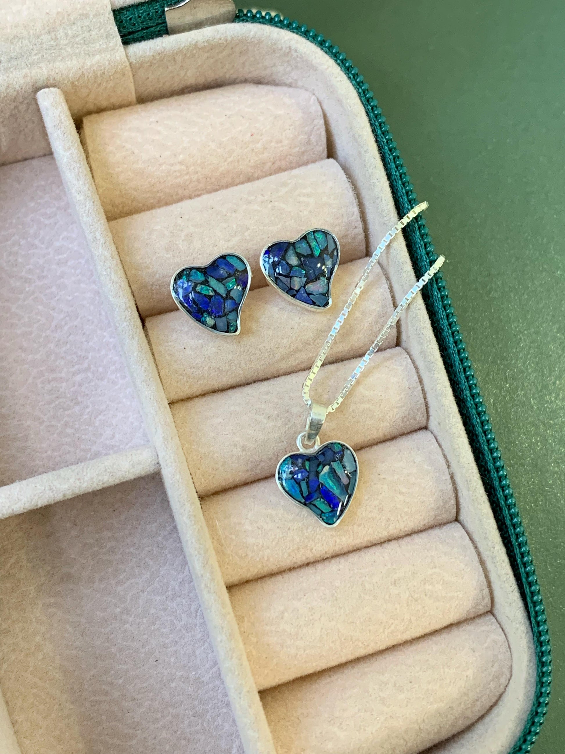 -Brinco Coração Torto em Opala | Pingente Coração Torto em Opala | Corrente Veneziana Fio 2 Tamanho:45cm