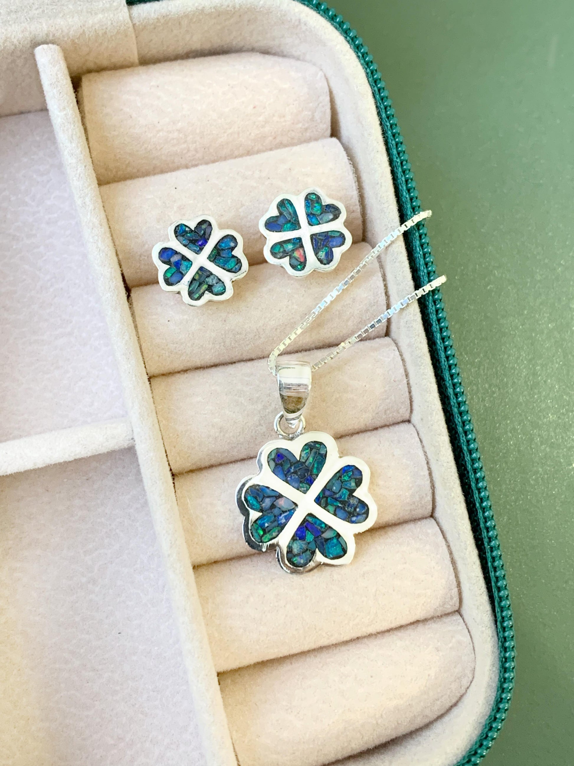 - Brinco Trevo Chapado em Opala | Pingente Trevo Chapado em Opala | Corrente Veneziana Fio 2 Tamanho:45cm