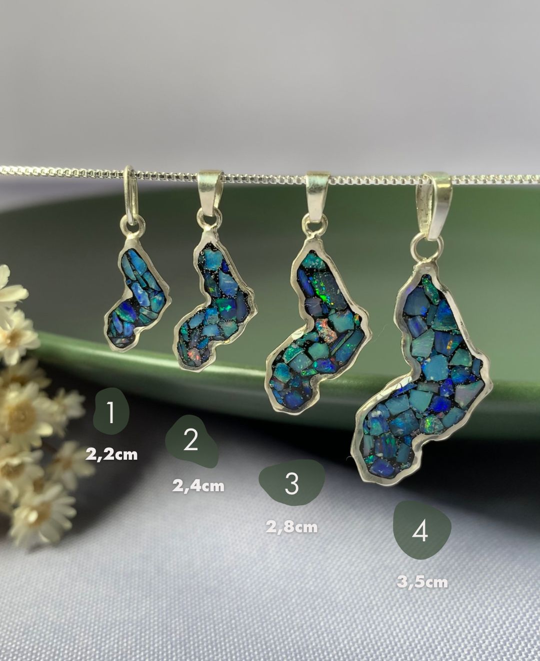 Encante-se com o Pingente Mapa do Piauí em Opala, uma joia única e artesanal que combina a beleza da Opala Natural com a prata 925. Este pingente delicado e luxuoso é perfeito para mulheres que amam e desejam levar seu estado do coração para onde quer que vão.