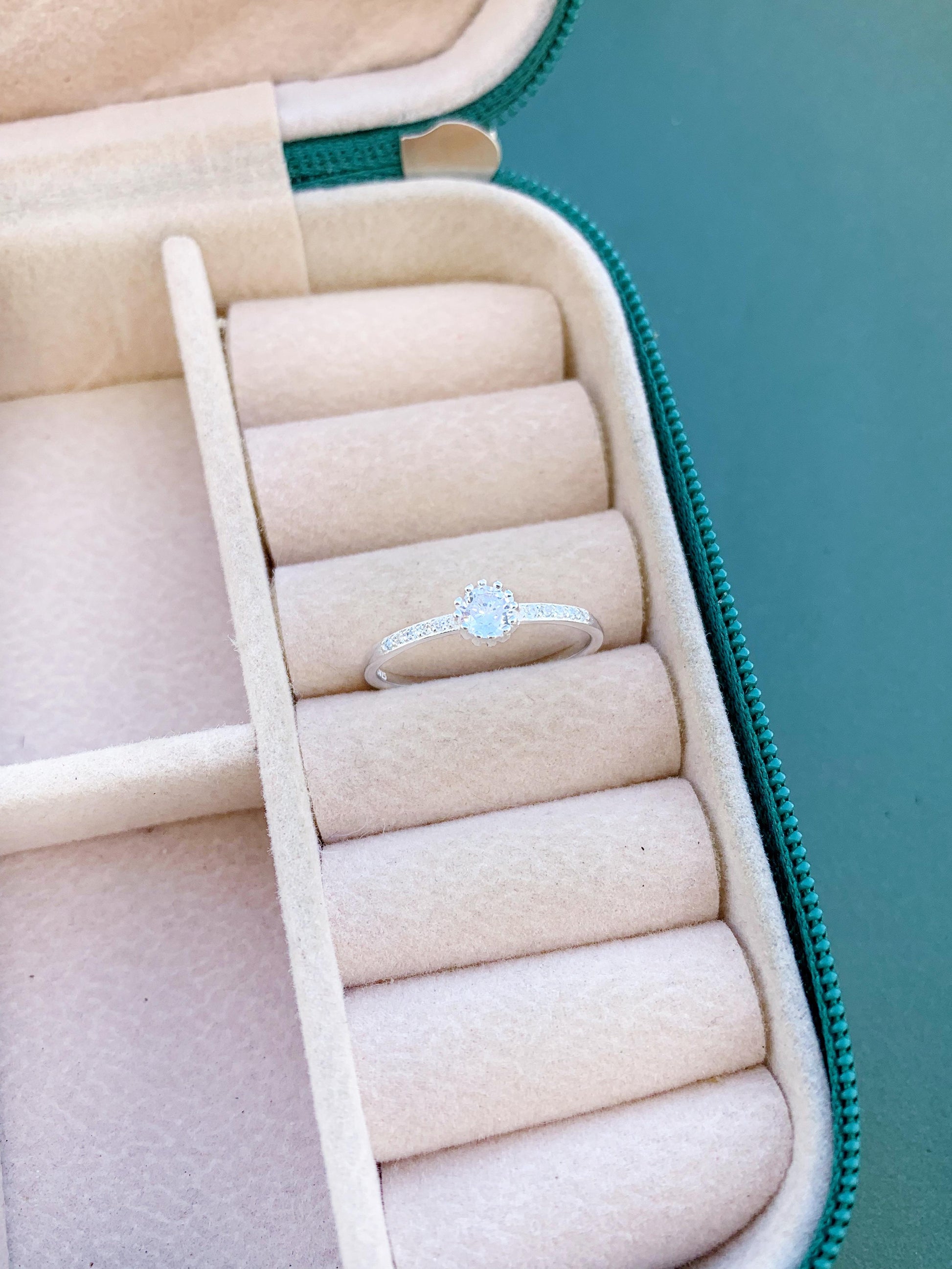 Pedra zircônia Redonda e Cravejado nas Laterais em prata 925